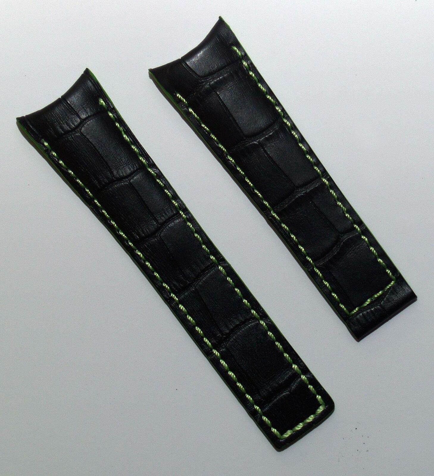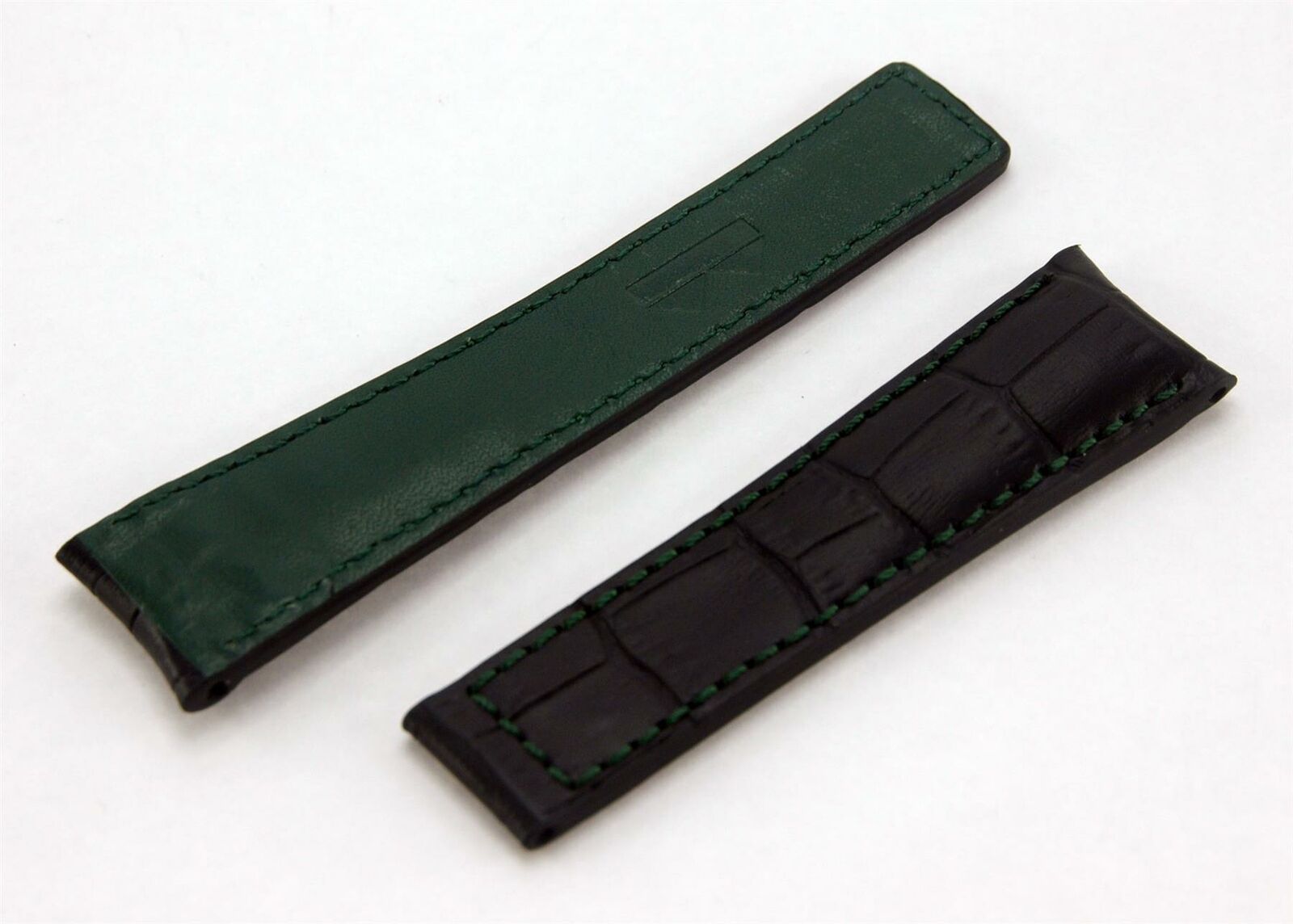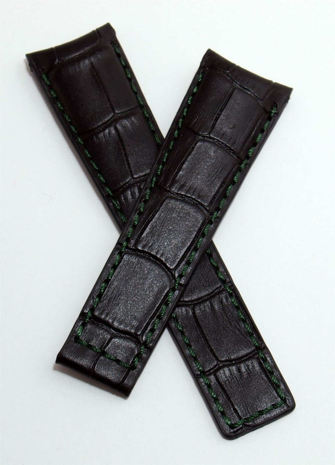 22/18mm BLACK/GREEN CROCODILE STYLE LEATHER STRAP to fit TAG HEUER GRAND CARRERA