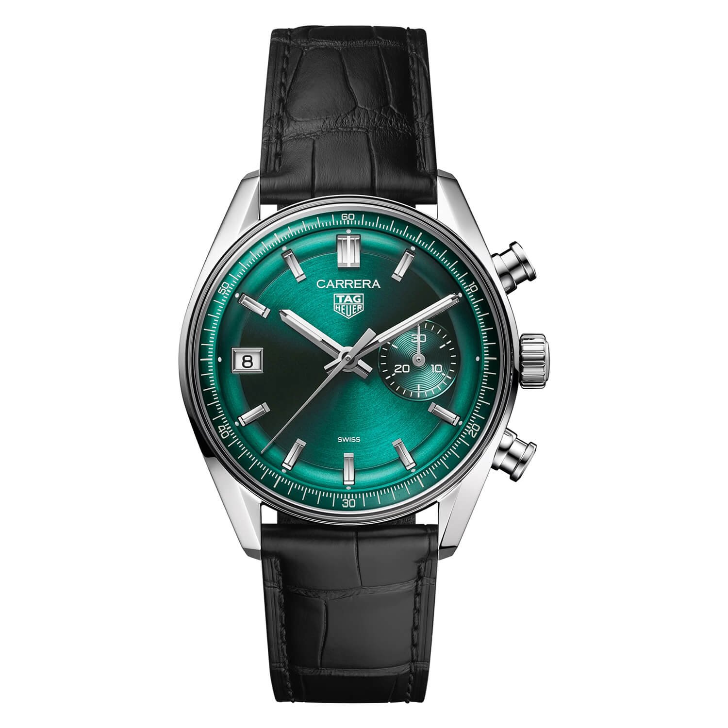 Carrera Chronograph 39mm Green Dial Black Leather Strap Men's