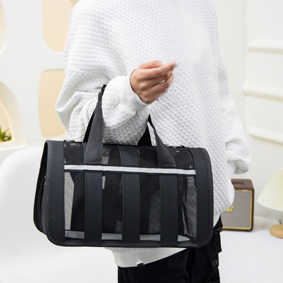(Black, L) Portable Dog Cat Carrier Bag Pet Puppy Travel Bags Breathable Mesh Small Dog Cat Dogs Outdoor Tent Carrier Outgoing Pets Handbag