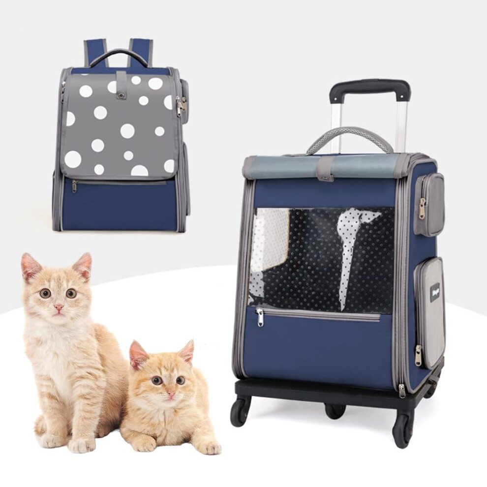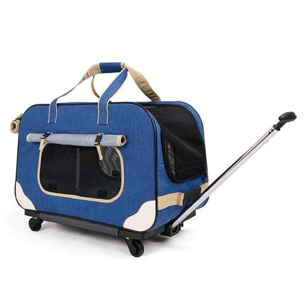 Pet Carrier Backpack with Wheels, Pet Trolley, Rolling Carrier for Pets, Blue