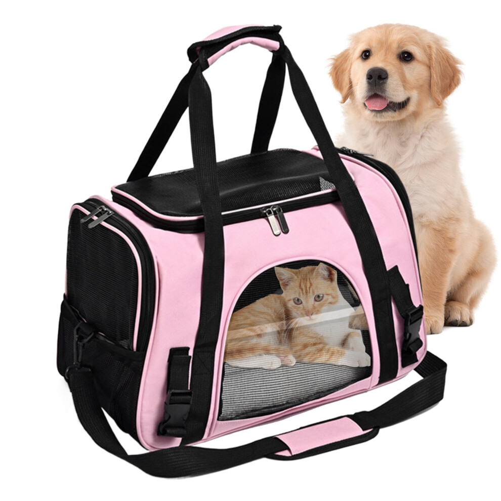 Soft-Sided Foldable Cat/Dog/Pet/Puppy Carrier Bag,Portable Pets Travel Carriers For Cats/Dogs/Pets With Shoulder Strap & Removable Mat,Durable Comfort Cat Basket Airline Approved(Pink,Medium)