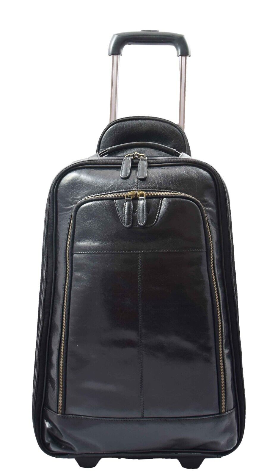 Real Leather Cabin Suitcase Wheels Travel Trolley Flight Carry on Luggage Black