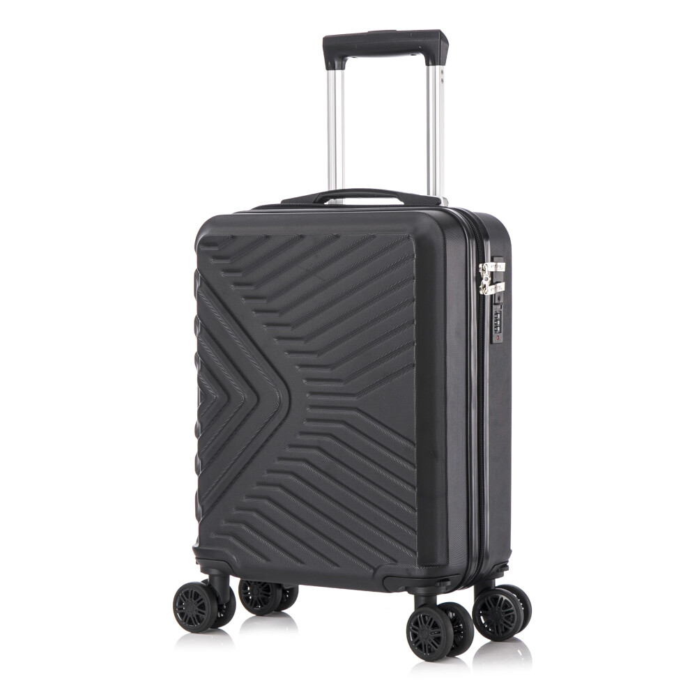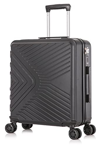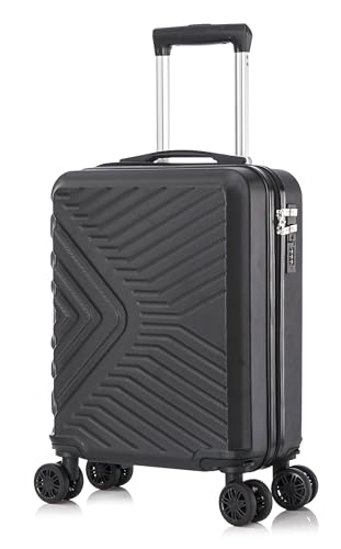 DK Luggage 56x45x25 cm Cabin Size EasyJet Max Jet2 British Airways Lightweight 4 Wheels Carry On Hand Luggage Suitcase ABS147 (Black, Carry-On 20-Inch)