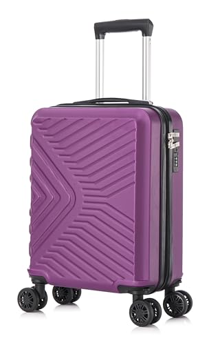 DK Luggage 56x45x25 cm Cabin Size EasyJet Max Jet2 British Airways Lightweight 4 Wheels Carry On Hand Luggage Suitcase ABS147 (Purple, Carry-On 20-Inch)