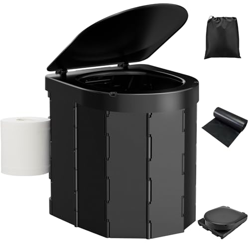 PAHTTO Portable Camping Toilet, Folding Toilet for Adults with Lid and Retractable Toilet Paper Holder,Waterproof Porta Potty with Carry Bag for Camping, Hiking, Fishing, Long Trips, Beach