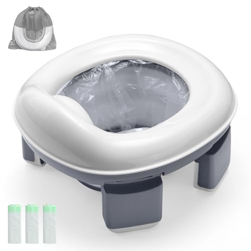 Warmiehomy Portable Travel Potty for Toddlers Kids Baby Foldable Potty Training Toilet Seat for 1-4 Years Boys Girls Indoor Outdoor Carry Potty Travel Toilet with 60pcs Cleaning Bags, Grey