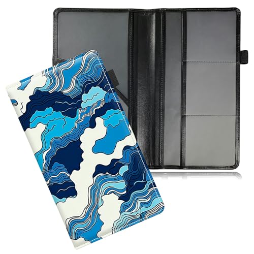 Dikoer Car Registration and Insurance Card Holder, Important Paperwork Organizer w/Elastic Strap Protector Leather Wallet Manual Folder Vehicle License Cars Accessories for Women Men, Blue Waves