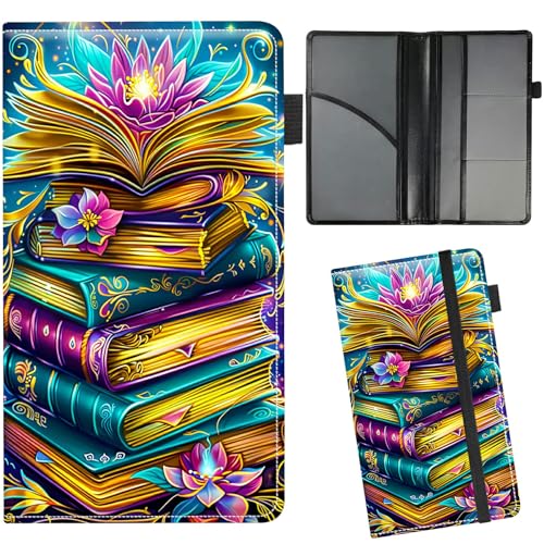 RWUTYTIUL Car Insurance and Registration Card Holder for Women Men, Cars Accessories Documents Organizer Leather Paperwork Wallet Case for Driver's License Key Information Cards, Book Lotus Flower