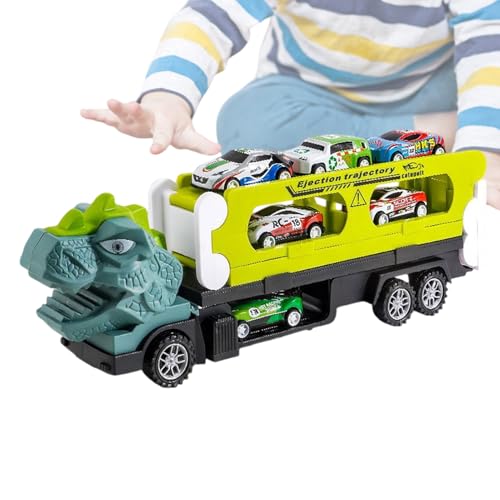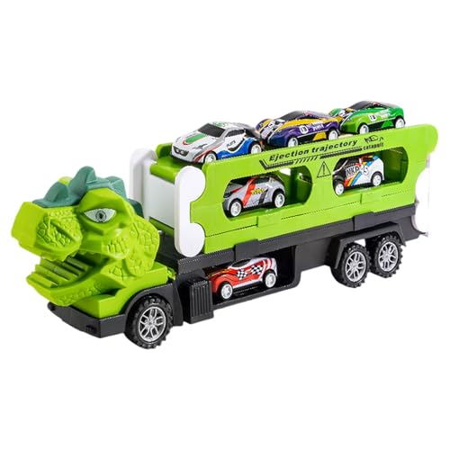 Electoys Dinosaur Car Transporter Toy Truck with 6 Mini Racing Cars Triceratops Design Green Vehicle Toy Set for Imaginative Play Kids Gift Idea for Boys and Girls Pack of 4