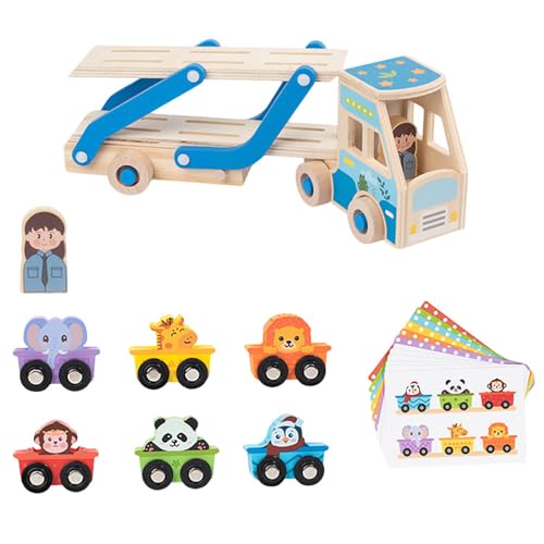 CLIUNT Wooden Car Transporter with 6 Cars, Wooden Emergency Vehicle Carrier, Montessori Toys for Boys Girls Vehicle Toys for kids - Set of 1