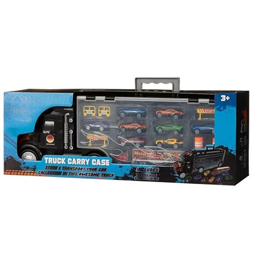 GBS Brothers Toy Car Transporter Truck Carry Case with 12 Die-Cast Cars, Storage Organizer for Kids, Vehicle Carrier Playset with Accessories