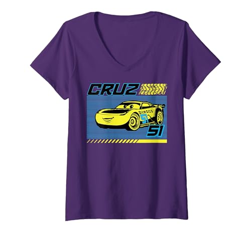 Women's Disney Pixar Cars Dinoco Cruz Ramirez V-Neck T-Shirt, Purple, X-Large