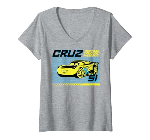 Women's Disney Pixar Cars Dinoco Cruz Ramirez V-Neck T-Shirt, Heather Grey, X-Large