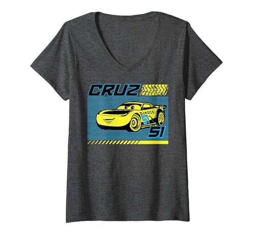 Women's Disney Pixar Cars Dinoco Cruz Ramirez V-Neck T-Shirt, Dark Heather Grey, X-Large