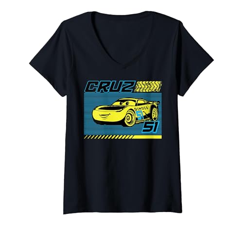 Women's Disney Pixar Cars Dinoco Cruz Ramirez V-Neck T-Shirt, Black, X-Large