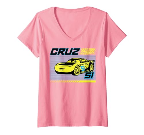 Women's Disney Pixar Cars Dinoco Cruz Ramirez V-Neck T-Shirt, Pink, X-Large