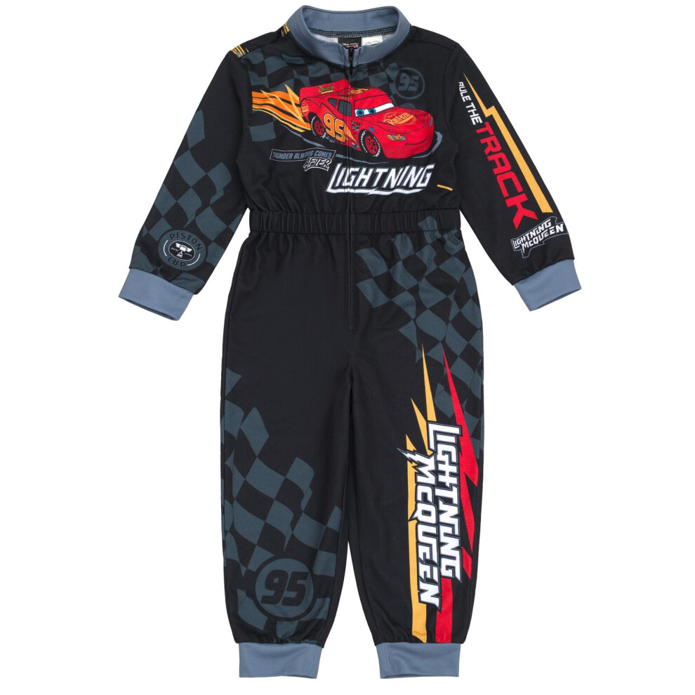 Disney Cars Lightning McQueen Little Boys French Terry Racing Zip Up Coverall Black 7-8