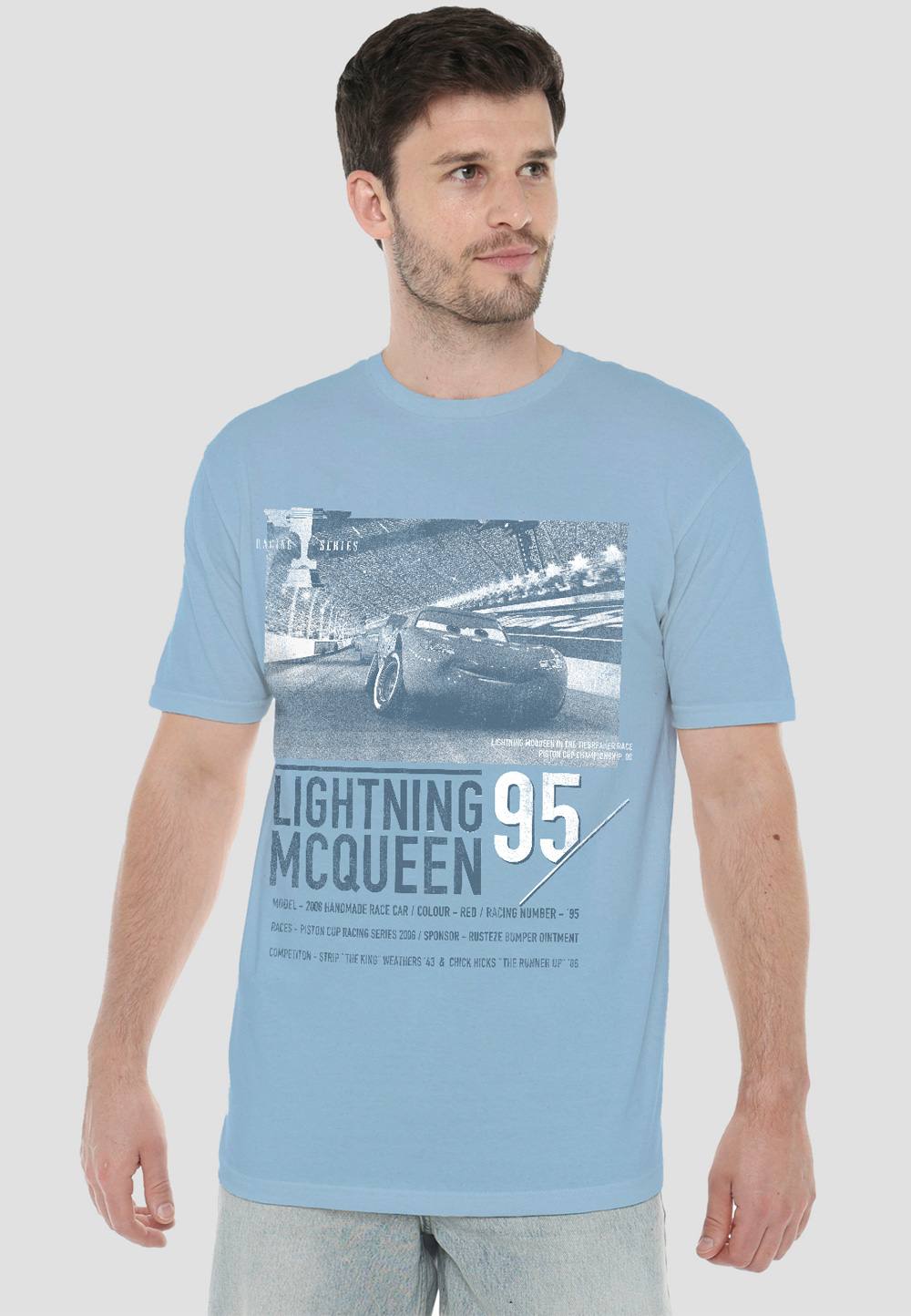 Disney Cars Lightning McQueen 195 T-Shirt, Light Blue in Baby Blue | Size: X-Large