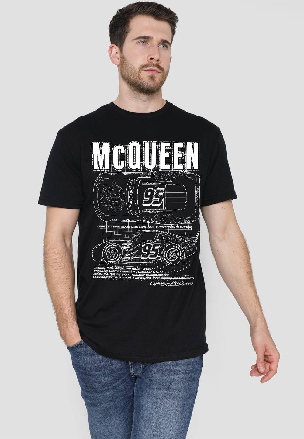 Disney Cars Lightning McQueen 198 T-Shirt, White | Size: large