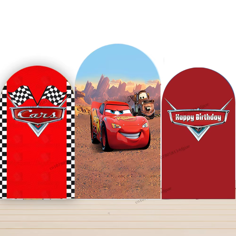 Disney Cars McQueen Arch Backdrop Cover Kids Boys Birthday Party Red Double Side Elastic Arch Custom Photography Background Prop