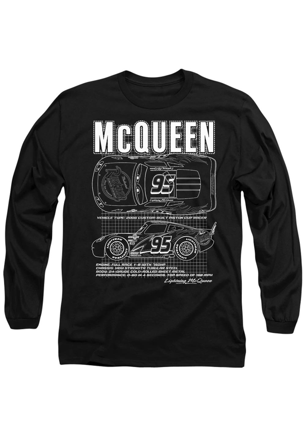 Disney Cars Lightning McQueen Outline Long Sleeve T-Shirt, Black | Size: large