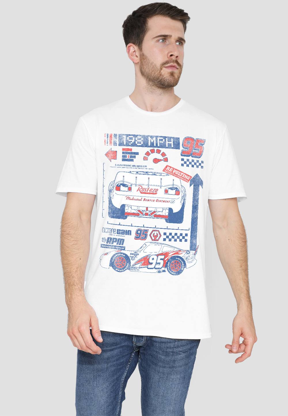 Disney Cars Lightning McQueen 198 T-Shirt, White | Size: X-Large