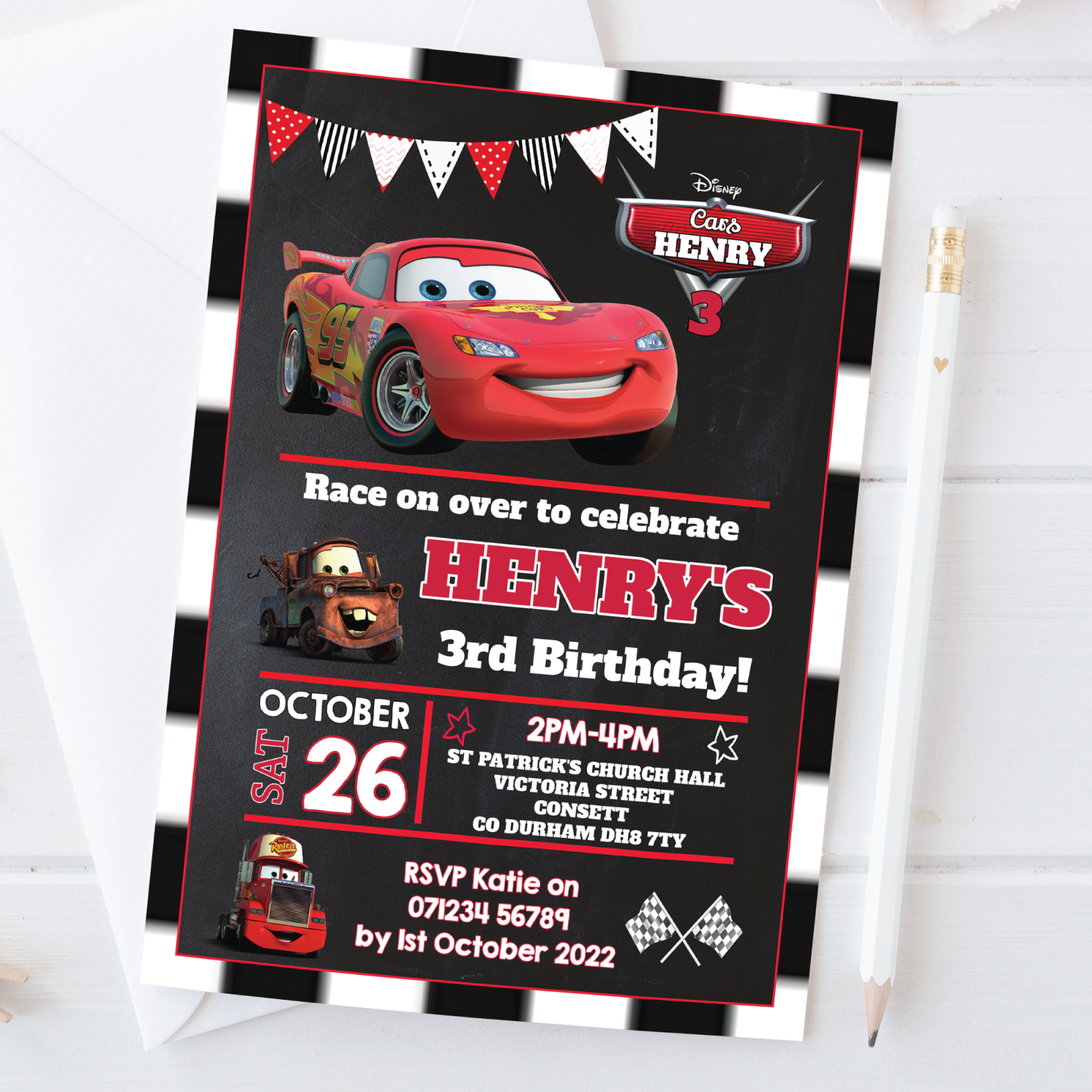 Personalised Disney Cars Birthday Party Invitations Lightning McQueen Invite x10