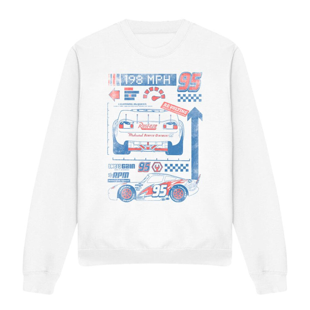 (XXL, White) Cars Unisex Adult 198 MPH Lightning McQueen Sweatshirt