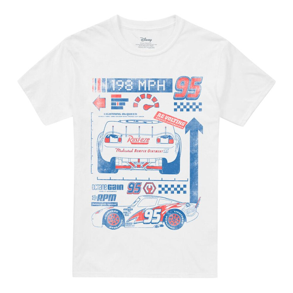 (3XL, White) Cars Mens 198 MPH Lightning McQueen T-Shirt