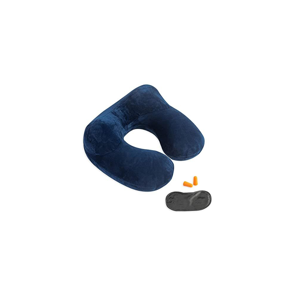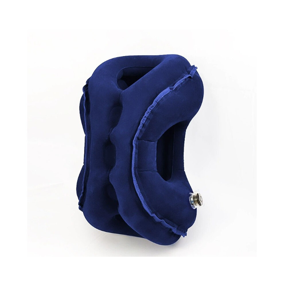 (Navy blue) Inflatable Travel Pillow - Portable Neck & Head Support Cushion for Cars, Trains, Offices & Long-Haul Flights, Brown with Orange Accents