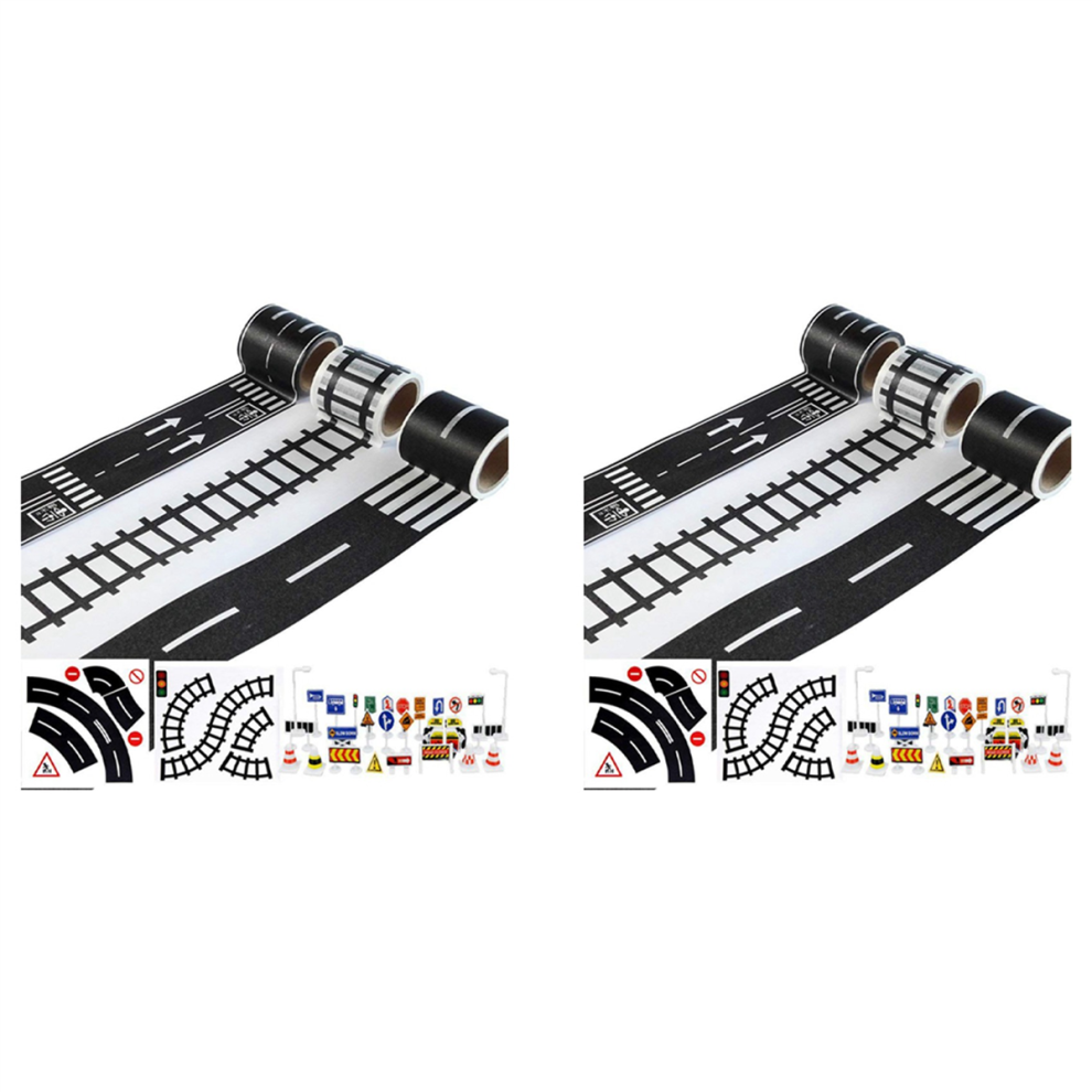 2 set Play Road Tape for Toy Cars and Trains 3 Rolls 4.8cmx5M Straight Curve Track Traffic Signs - Kids Gifts