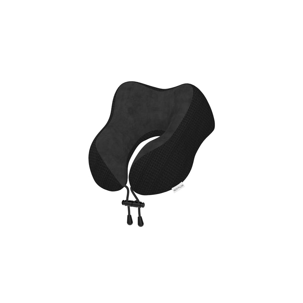 Travel Pillow Neck Pillow for Travel Airplane Memory Foam Flight Pillow for Cars, Trains, Home, Offices (Black)