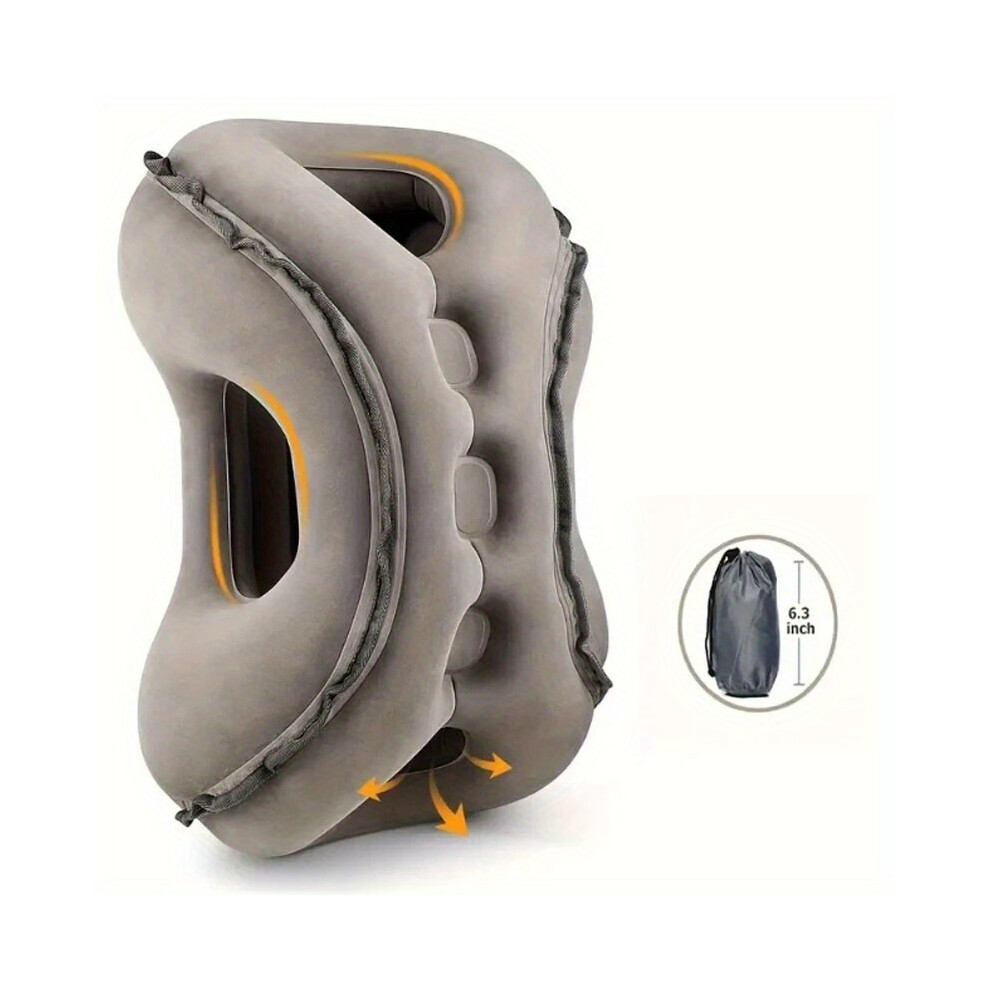 (Gray) Inflatable Travel Pillow - Portable Neck & Head Support Cushion for Cars, Trains, Offices & Long-Haul Flights, Brown with Orange Accents