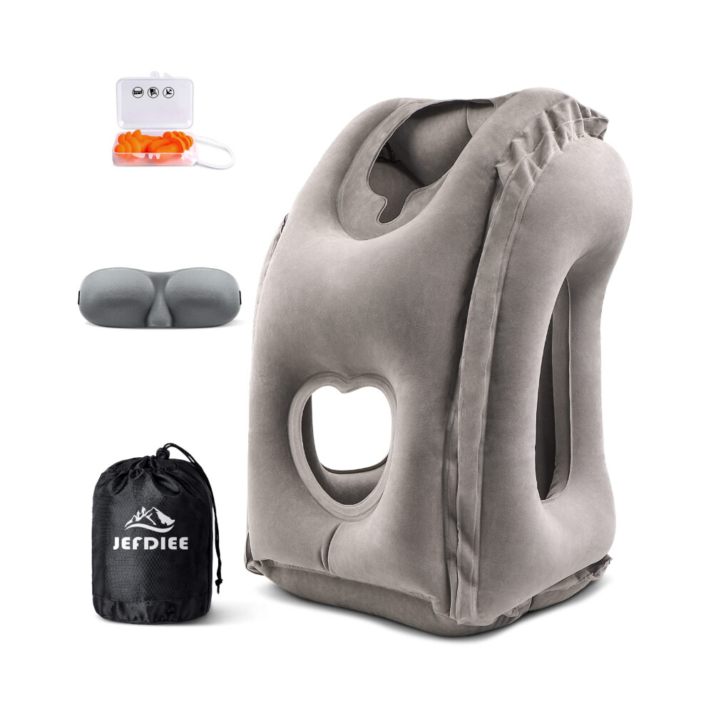 JefDiee Inflatable Travel Pillow Airplane Neck Pillow Comfortably Supports Head and Chin for Airplanes Trains Cars Office Napping on The Tray Table