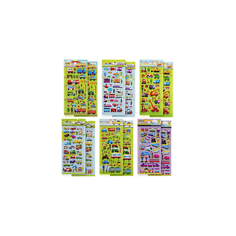 SAVITA 3D Stickers for Kids & Toddlers, 400+ Cars & Trucks, 3D Puffy Stickers Including Cars, Trains, Airplanes, Fire Trucks, Helicopters, Motorcycles, School Buses, Spaceships