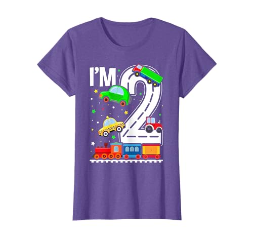 I'm 2 Birthday Boy 2nd Bday Trains Cars Planes Vehicles T-Shirt