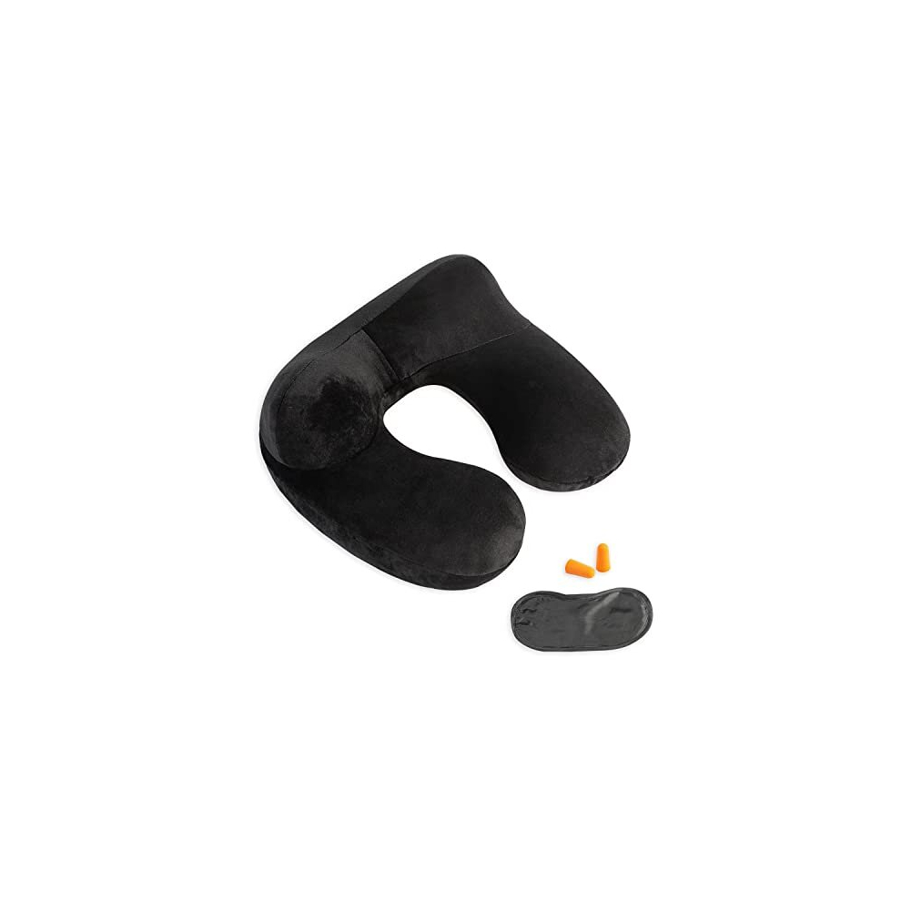 Inflatable Travel Pillow - 100% Soft Velvet Neck Support for Traveling, Airplanes, Trains, Cars, and Offices with Compact Carrying Bag, Breathable and Washable Cover, Ideal for Adult Sleepers -Black