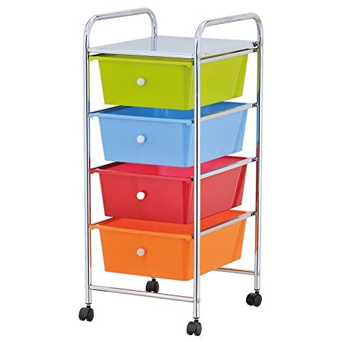 Hampton & Stewart HOME OFFICE CHROME 4 DRAWER STORAGE CART TROLLEY WITH WHEELS PORTABLE RACK