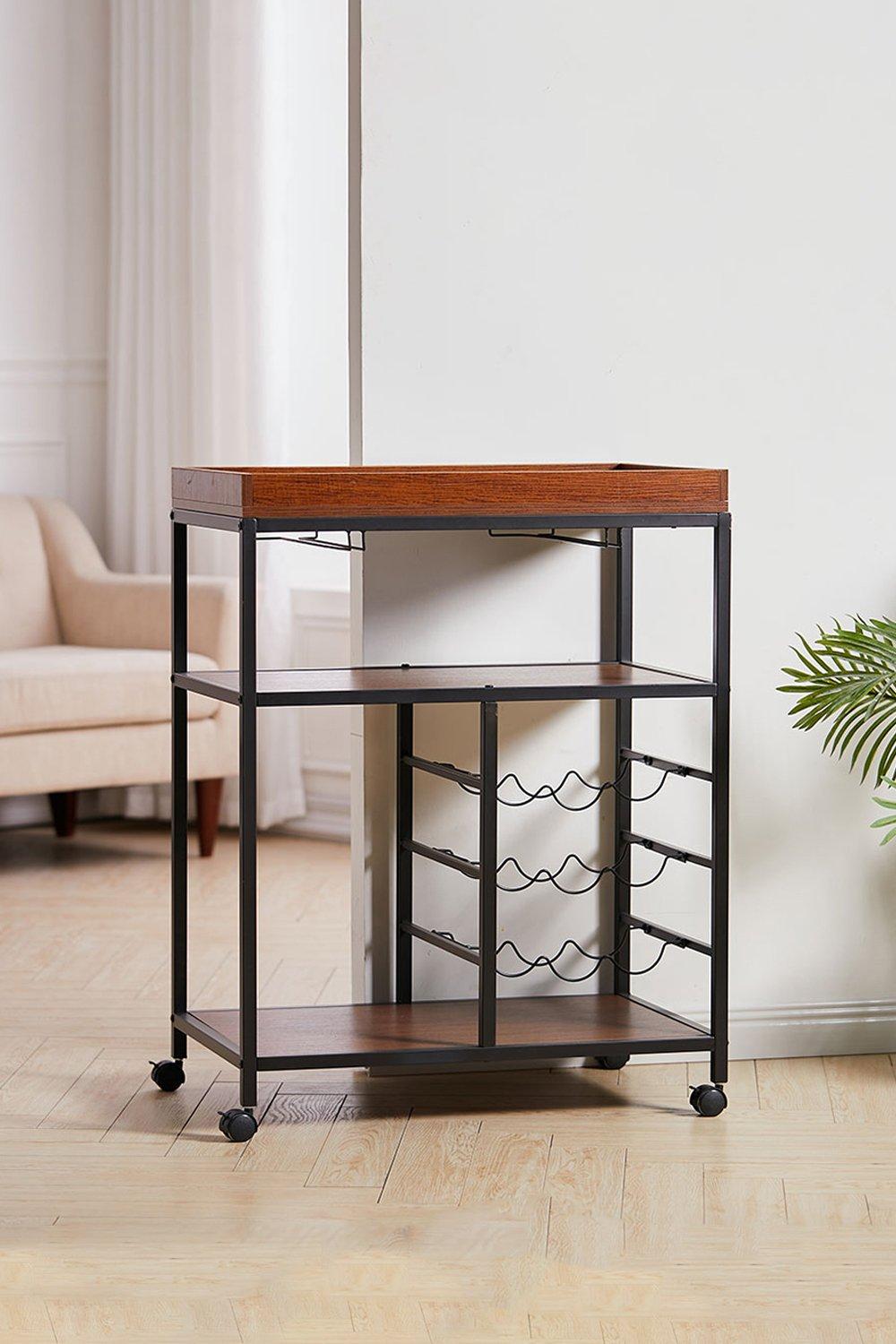 JYHHGDS Storage Rack Contemporary Rolling Bar Cart,with 3 Guarded Open Shelves,Tea/Wine Serving Bar Cart with 3 Wheels,Ideal for Kitchen,Hotel or Restaurant,R