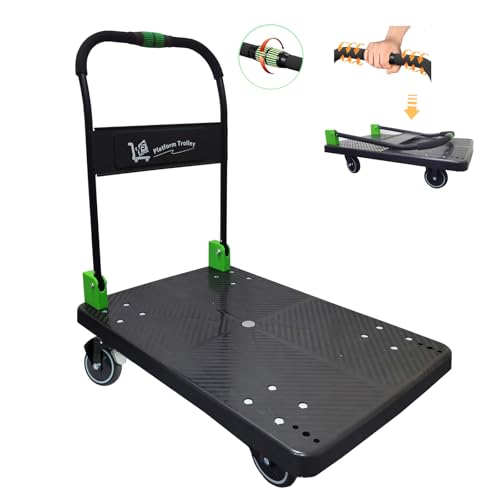 N&S Juvyig Platform Trolley Heavy Duty - Platform Truck One-Handed Folding Truck Cart with Silent Wheels - Folding Trolley (Green-Big-with Brake)