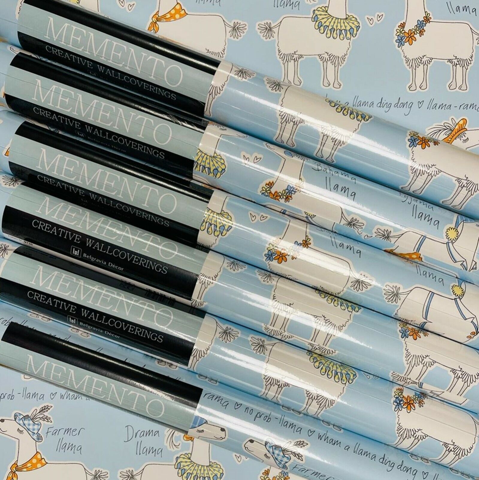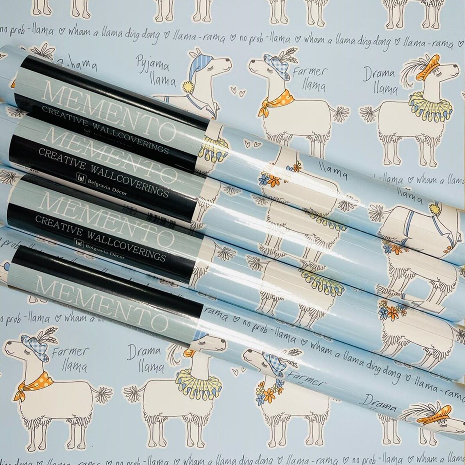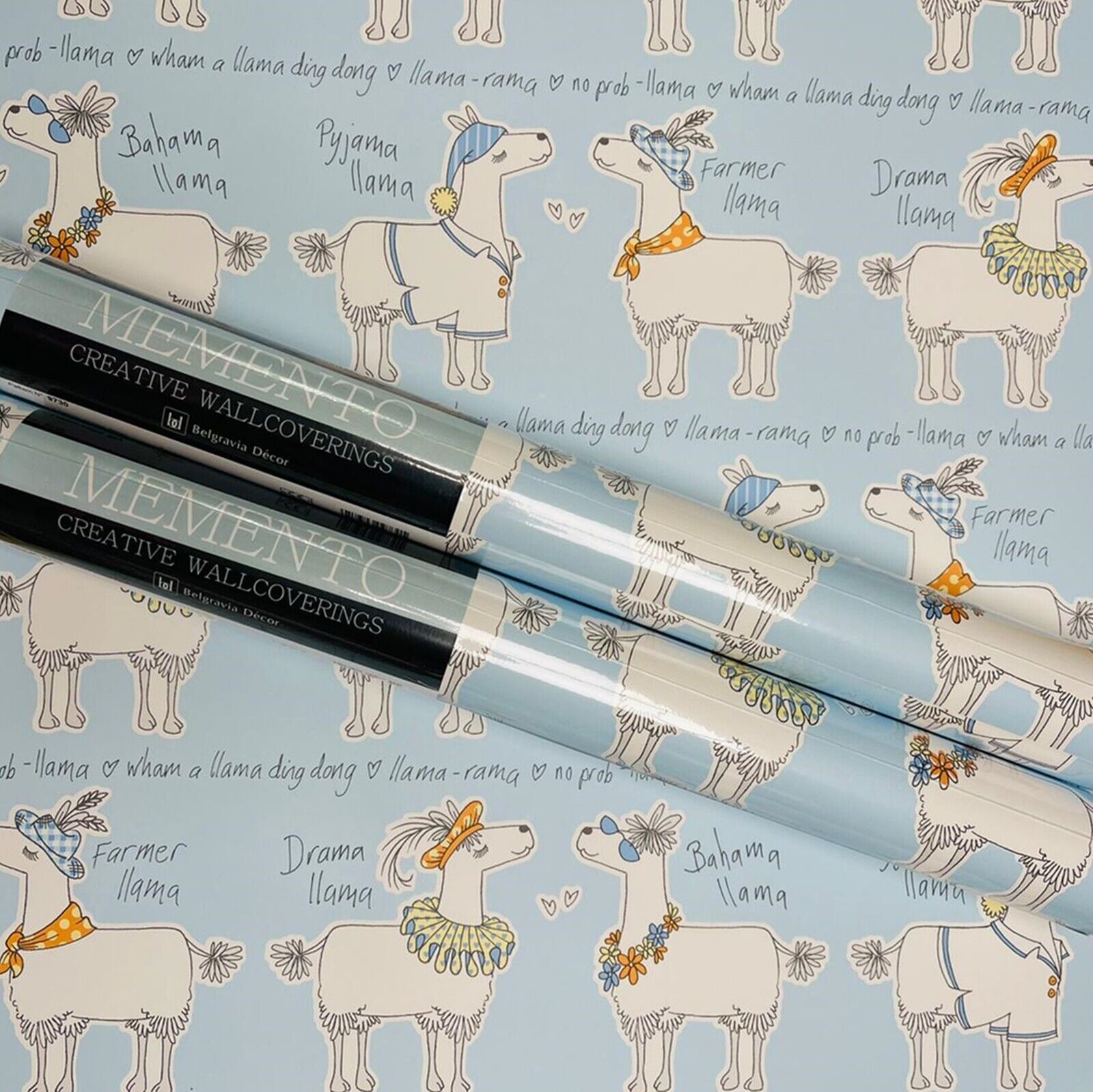 8 x Belgravia Llama Rama Cartoon Sky Blue Childrens Bedroom Nursery Wallpaper