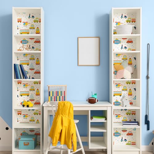 VaryFloral Cartoon Transports Self Adhesive Wallpaper 30.5cmx300cm White Contact Paper Cute Childish Vinyl Wrap Car Train Boys Thickened Texture Teenager Wallpaper for Cabinet Wall Decor