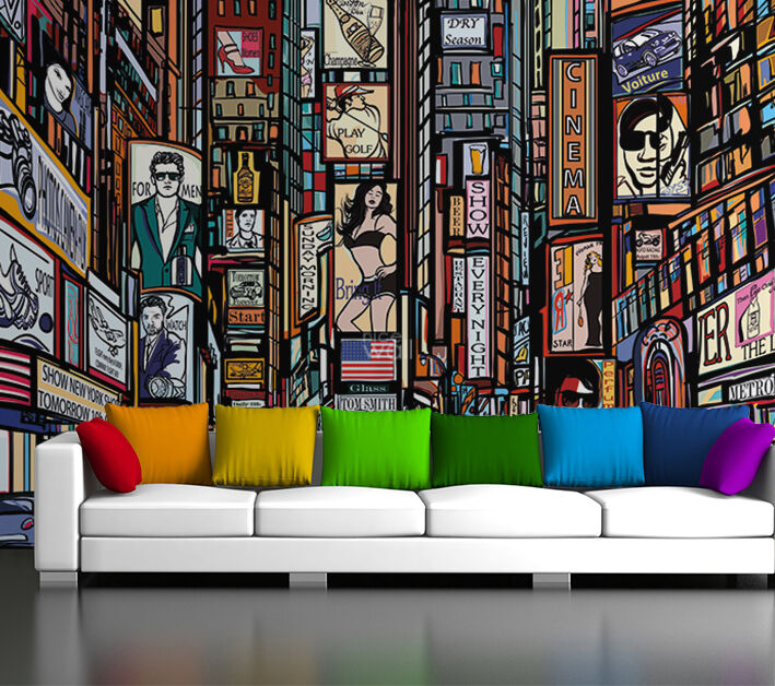 Teen bedroom wallpaper New York Cartoon Picture style wall mural 366x254cm