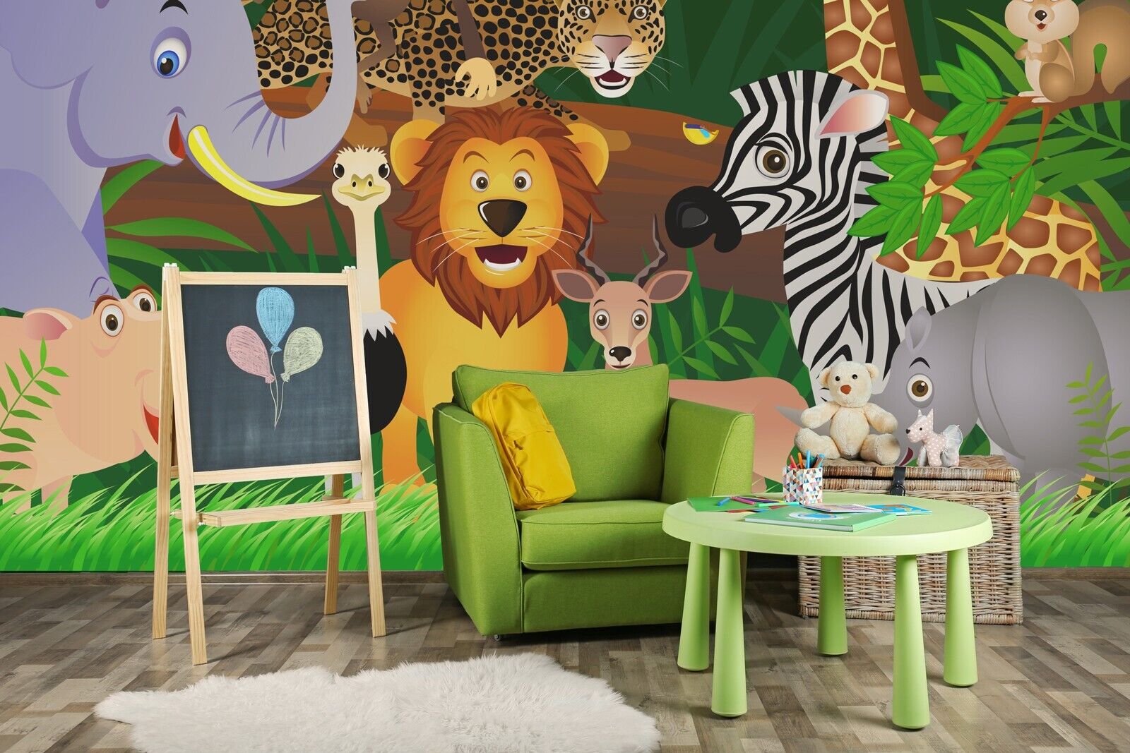Kids bedroom Wall Mural WALLPAPER nursery decor jungle animals green cartoon