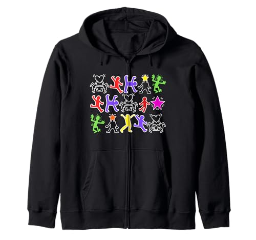 Keith Bright Wallpaper Lithograph Cartoon, Bold Grafitti Art Zip Hoodie