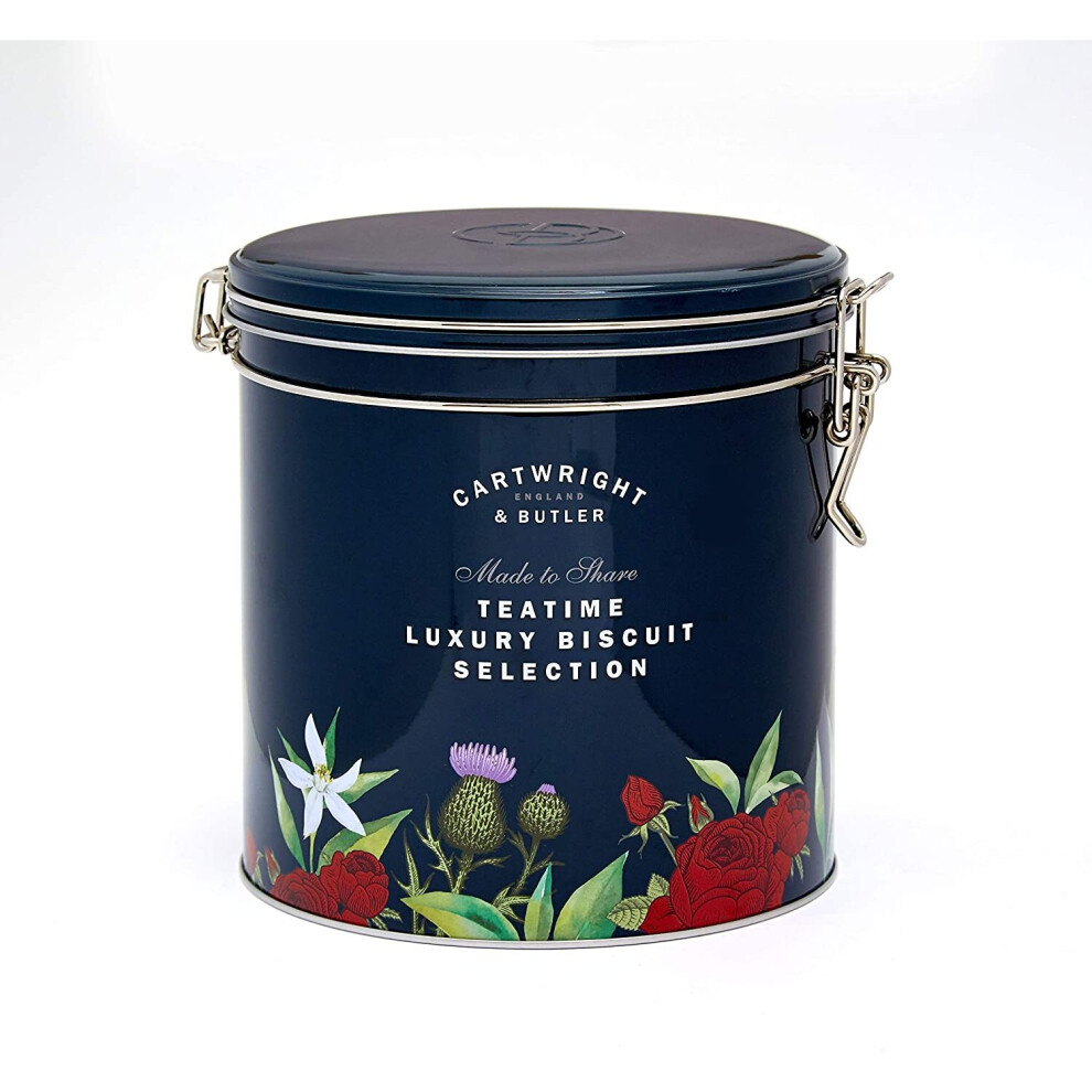 Cartwright & Butler Tea Time Selection Biscuits Barrel | Embossed Clip-Lid Tin | Buttery and Crumbly Classic Biscuits | Salted Caramel and Demerara Sh