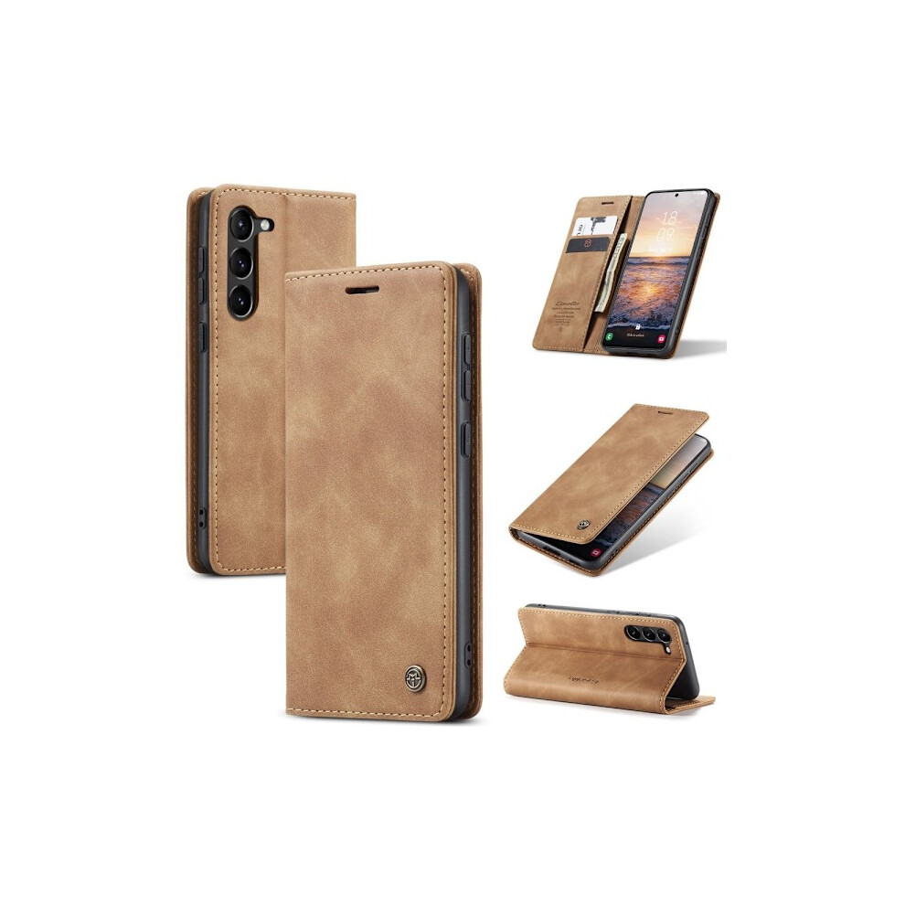 (For compatible with Samsung Galaxy S23 Plus) CaseMe Retro Leather Wallet Case with Stand and Card Slots Dark Brown