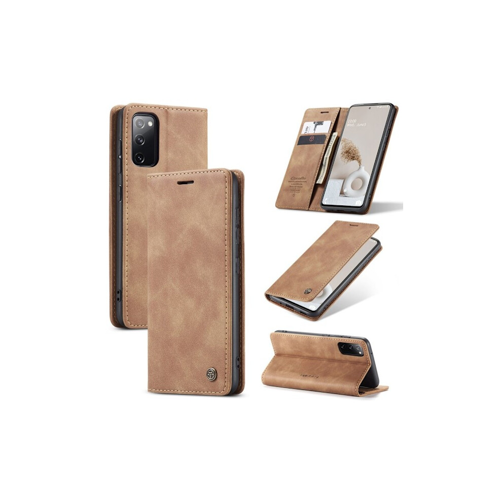 (FOR Samsung Galaxy S20 FE 4G/5G) Caseme Retro Leather Wallet Case with Stand, Card Slots & Shockproof Protection, Dark Brown