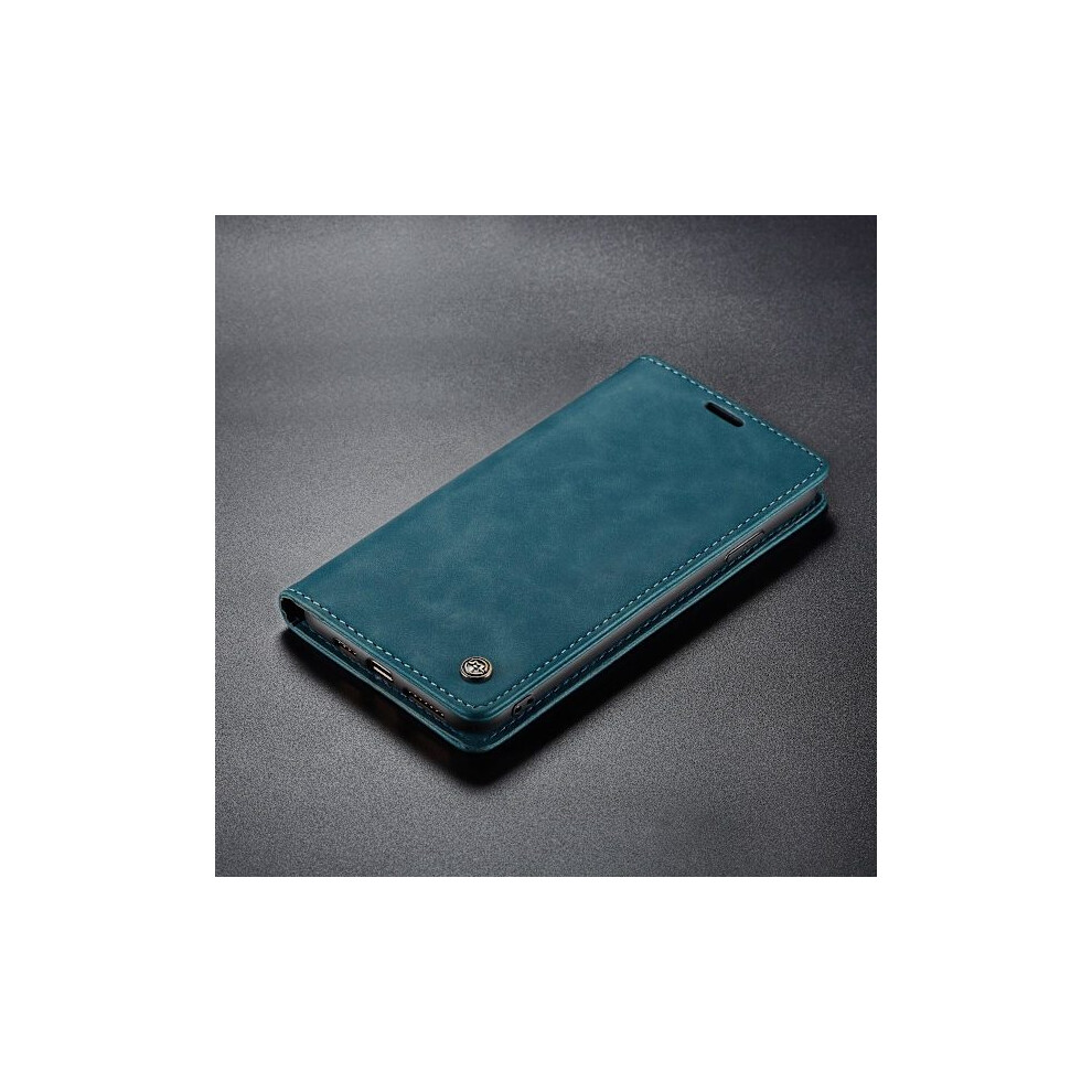 (For compatible with Samsung Galaxy S21) CaseMe Luxury Retro Leather Wallet Case with Stand and Card Slots, Slim Design Peacock Blue