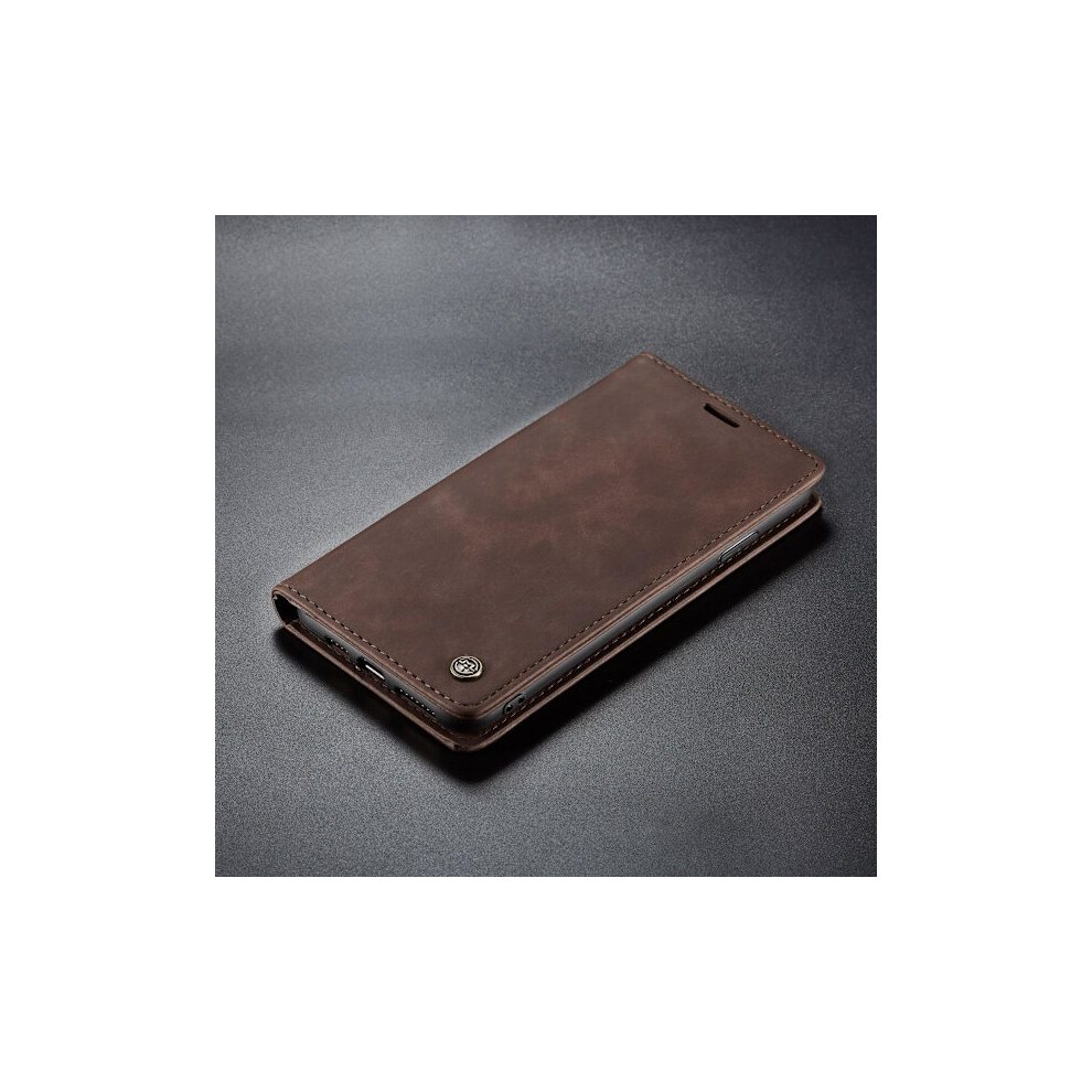 (For compatible with Samsung Galaxy S21) CaseMe Luxury Retro Leather Wallet Case with Stand and Card Slots, Slim Design Coffee